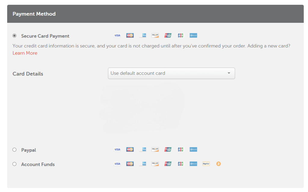 付款方式有信用卡、PayPal支付,依照個人需求選擇,輸入付款資料